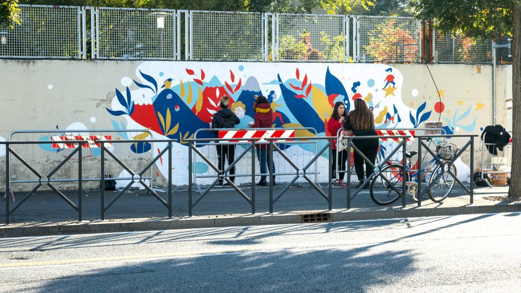 Lo scorso ottobre Nadia Groff, street artist trentina, ha realizzato un fantasioso e vivace murale in Viale Druso a Bolzano, portando un po’ di colore nella trafficata strada del capoluogo altoatesino. L’opera fa parte del progetto “Il mondo è donna”, nato nel 2020 e sostenuto dal Centro per la Pace, l’Ufficio Donna del Comune di Bolzano e il progetto Artemisia di COOLtour.